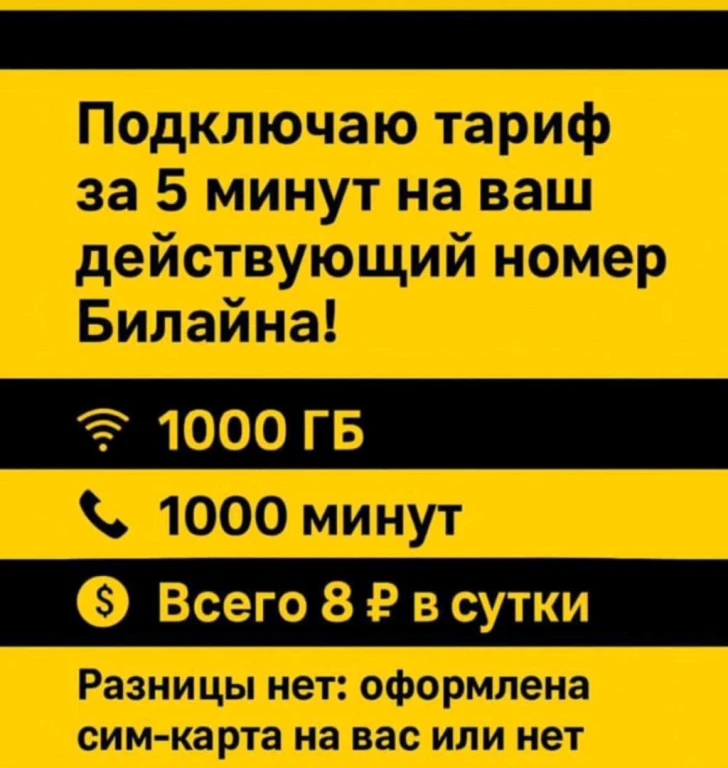 ✅Подключаем тариф на Ваш номер билайн