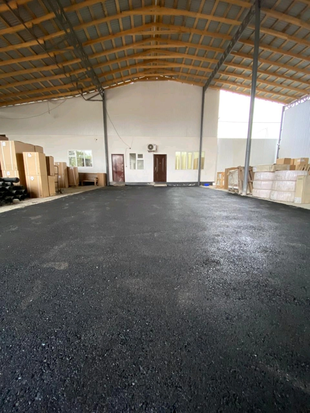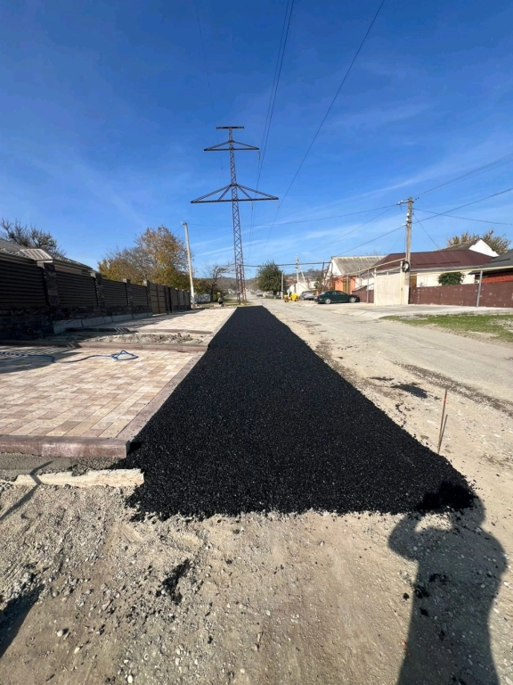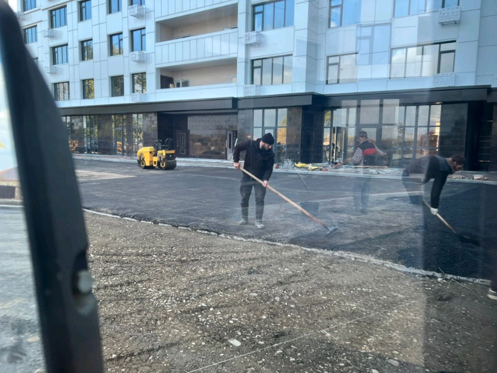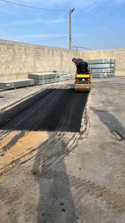 Укладка асфальтовой крошки и горячего асфальта.