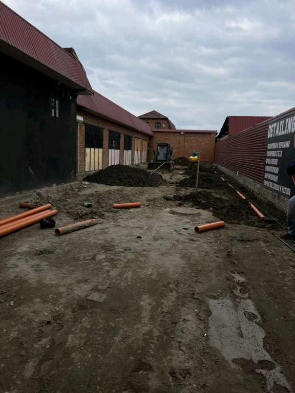 Установка бордюров и ливневок.