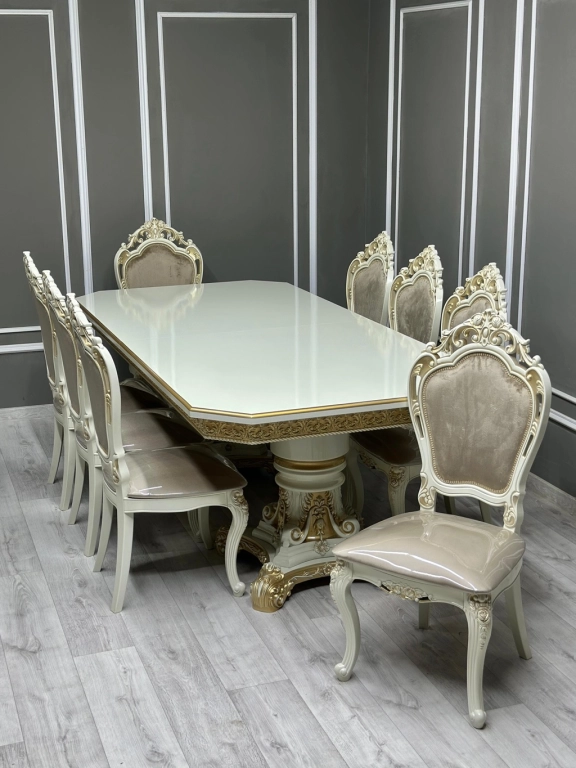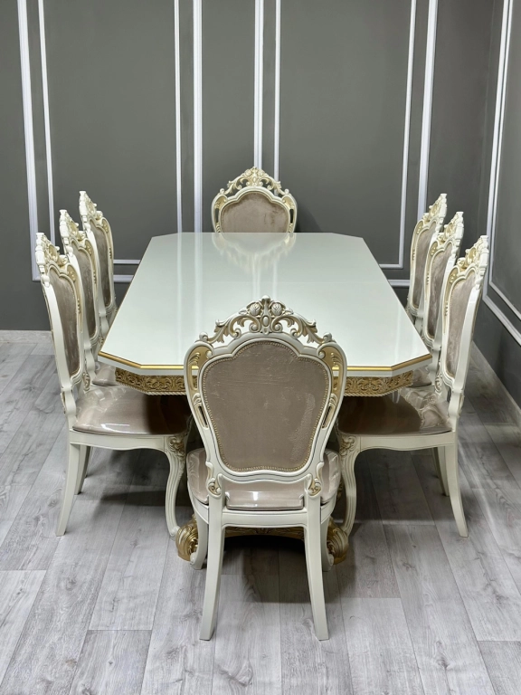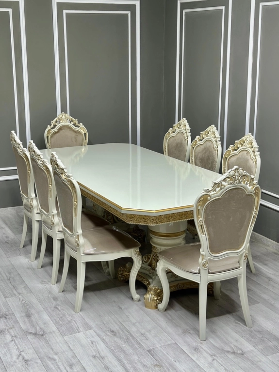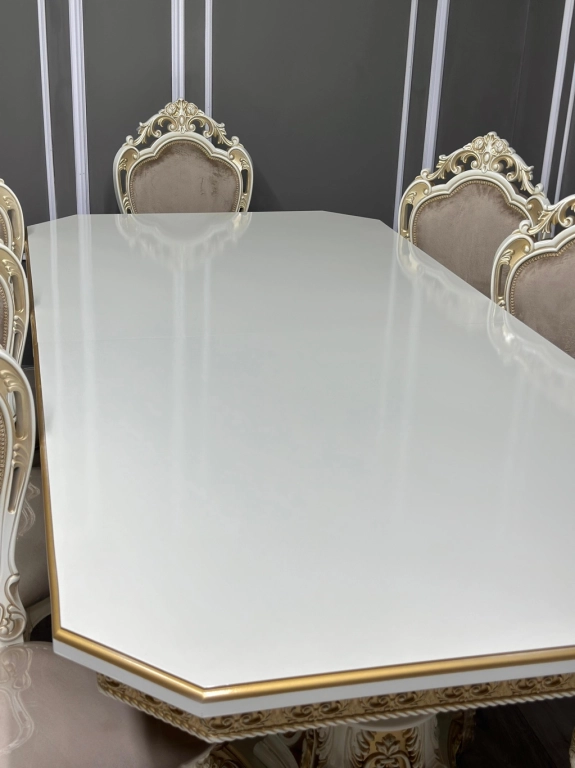✔️Стол Голд раздвижной (беж/золото) Гладкий, без мрамора