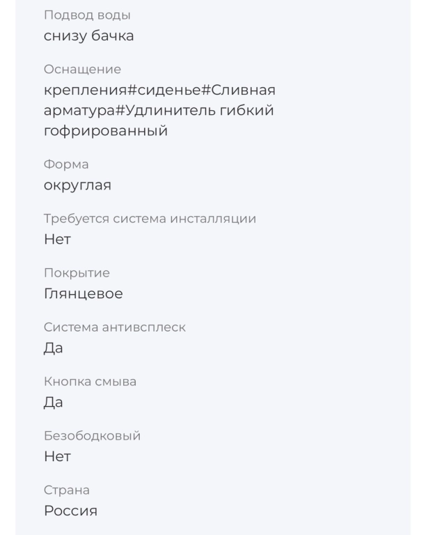 Модель унитаза имеет круговой перфорированный смыв. Керамика покрыта химически и термически стойкой глазурью.